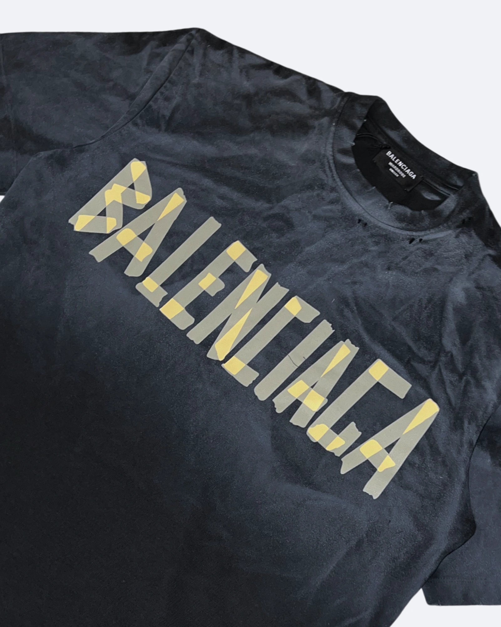 Balenciaga - Yellow Tape Distressed T-Shirt - Washed Black