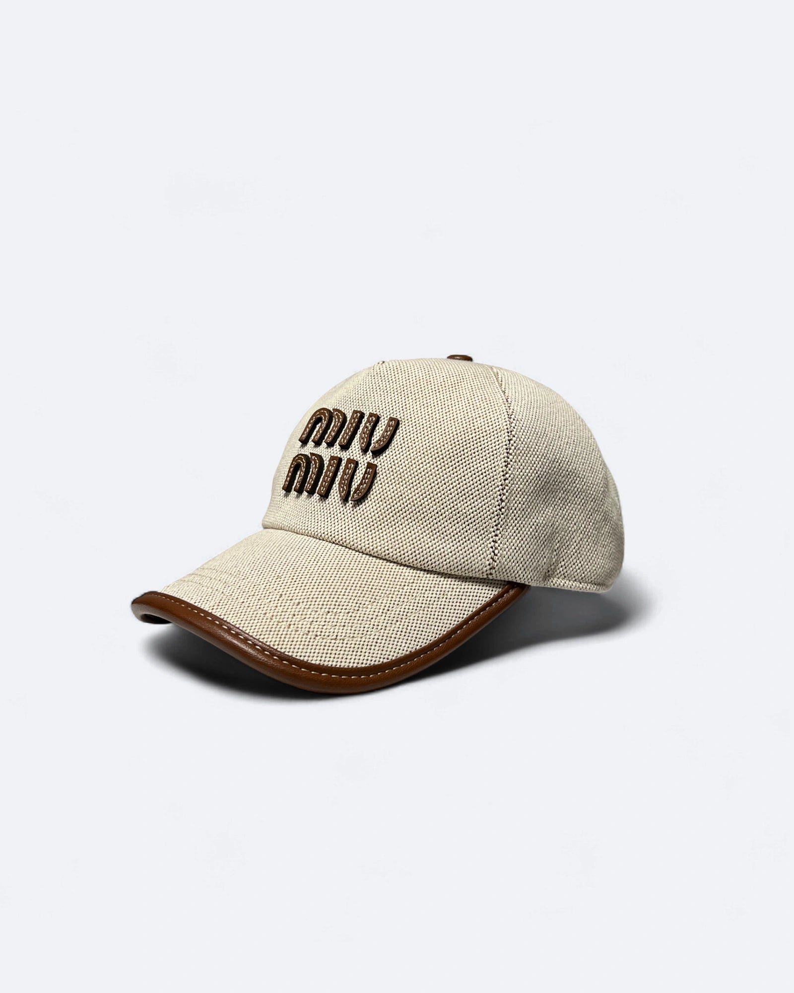 Miu Miu - Cavnas and Leather Logo Cap - Beige